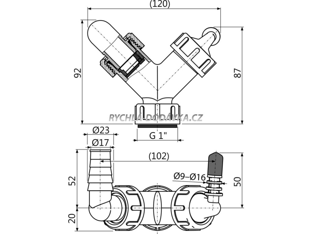 Dvě kolínka k napojení spotřebičů – pračky, myčky, sušičky, kotle, klimatizace, rekuperace, atd.