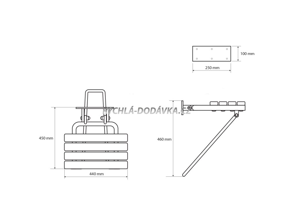 HANDICAP sklopné sedátko do sprchového koutu s opěrnou nohou, 44x45cm, bílá XH001