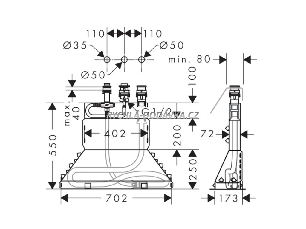 Hansgrohe Montážní tělesa - Základní těleso tříotvorové vanové pákové baterie na okraj vany 13437180