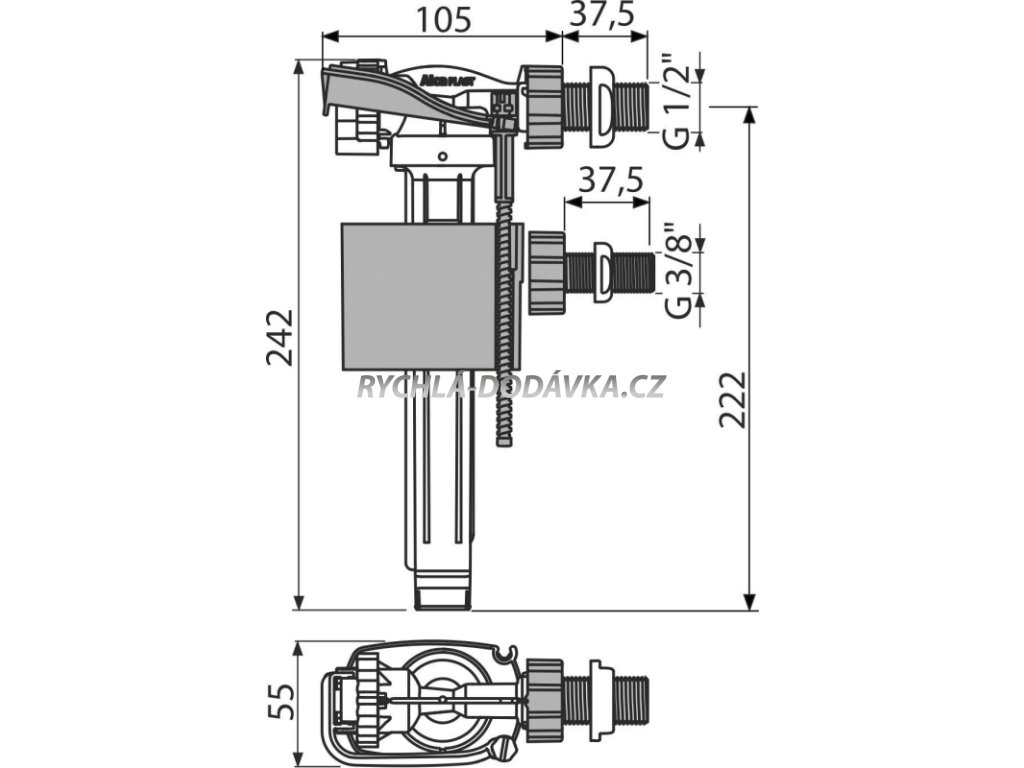 Alcadrain A160UNI - Napouštěcí ventil boční kovový závit, univerzální + SLEVA 3% při použití kódu MS3 v košíku