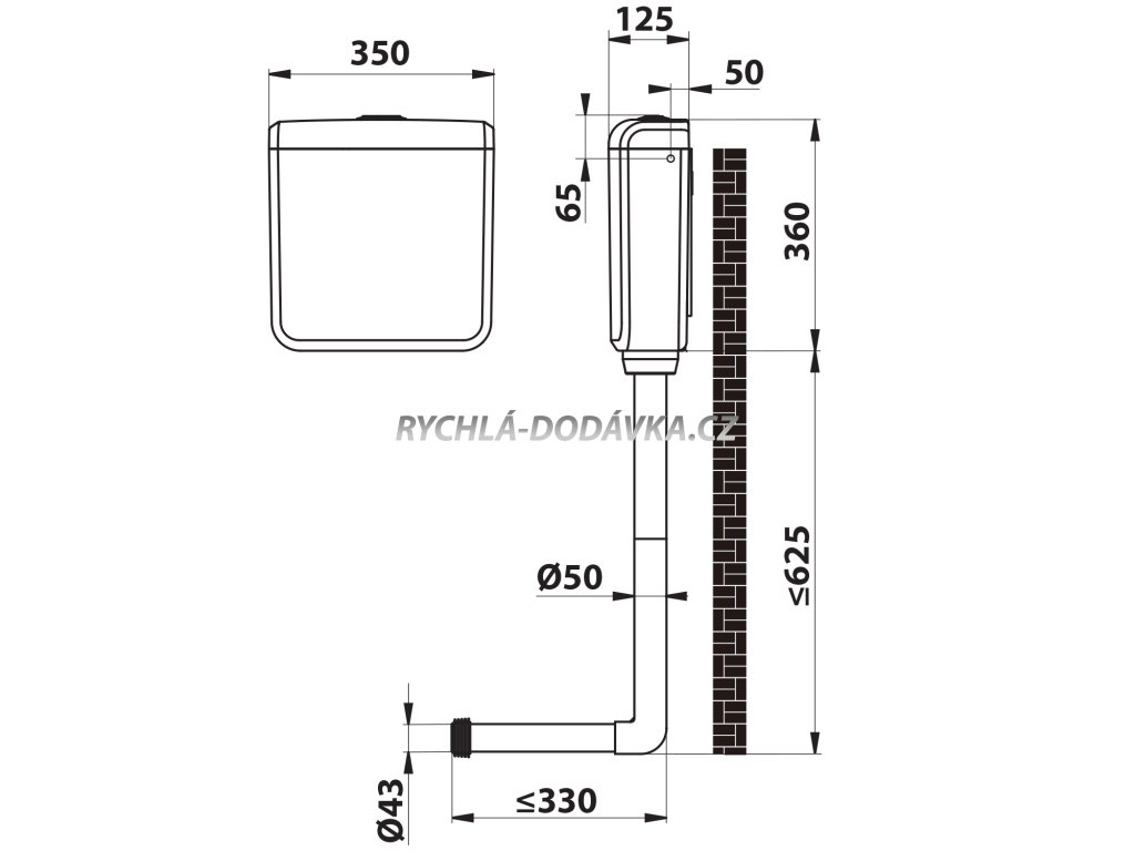 Nástěnná nízkopoložená splachovací nádržka, duální splachovaní, boční přívod 1/2", polypropylen T1801S