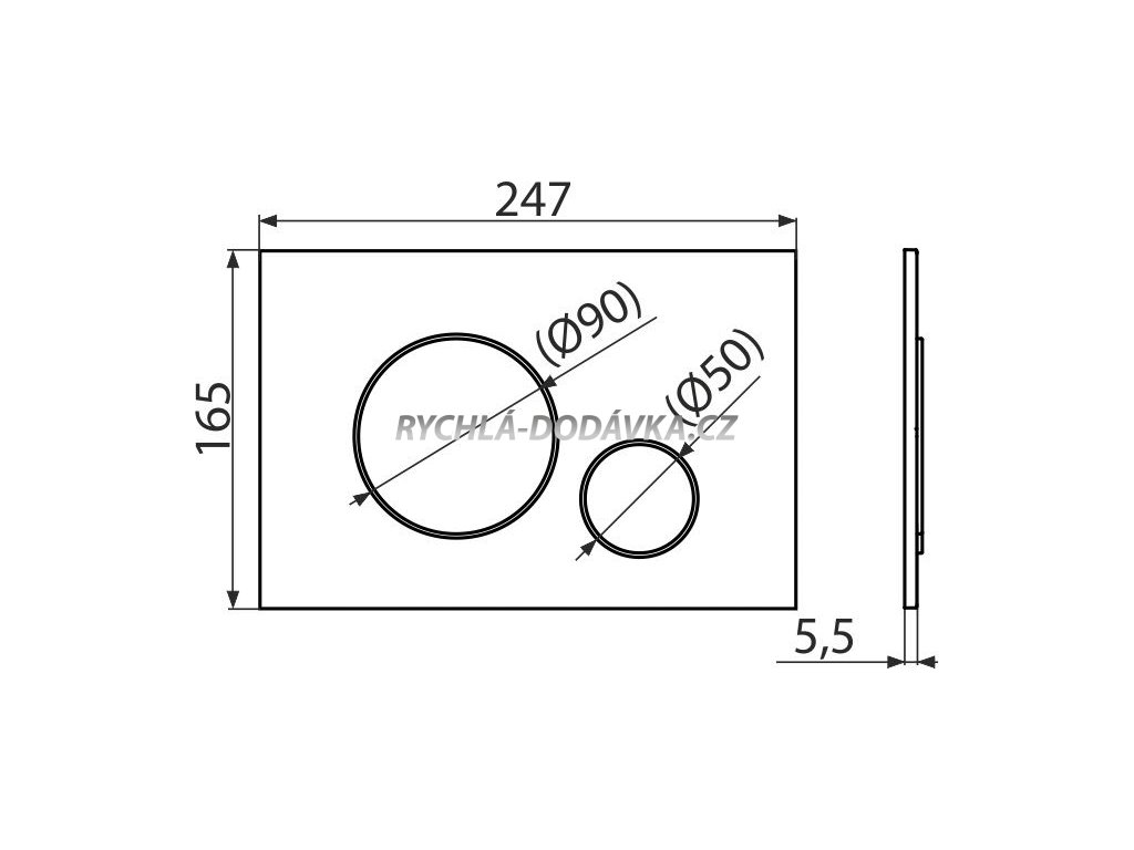 Tlačítko minimálně vystupuje nad obklad díky tlouštce pouhých 5,5 mm