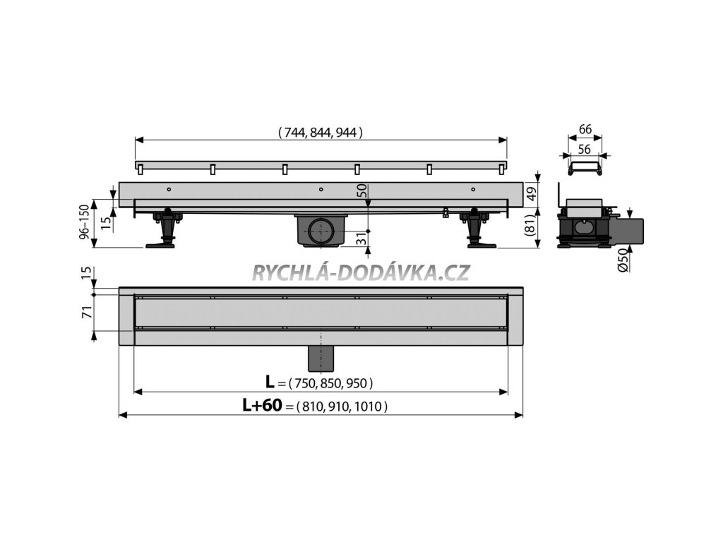 Alcadrain APZ23-DOUBLE9-850 - Podlahový žlab + SLEVA 3% při použití kódu MS3 v košíku