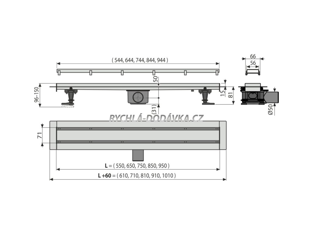 Celková stavební výška - 96 - 150 - mm