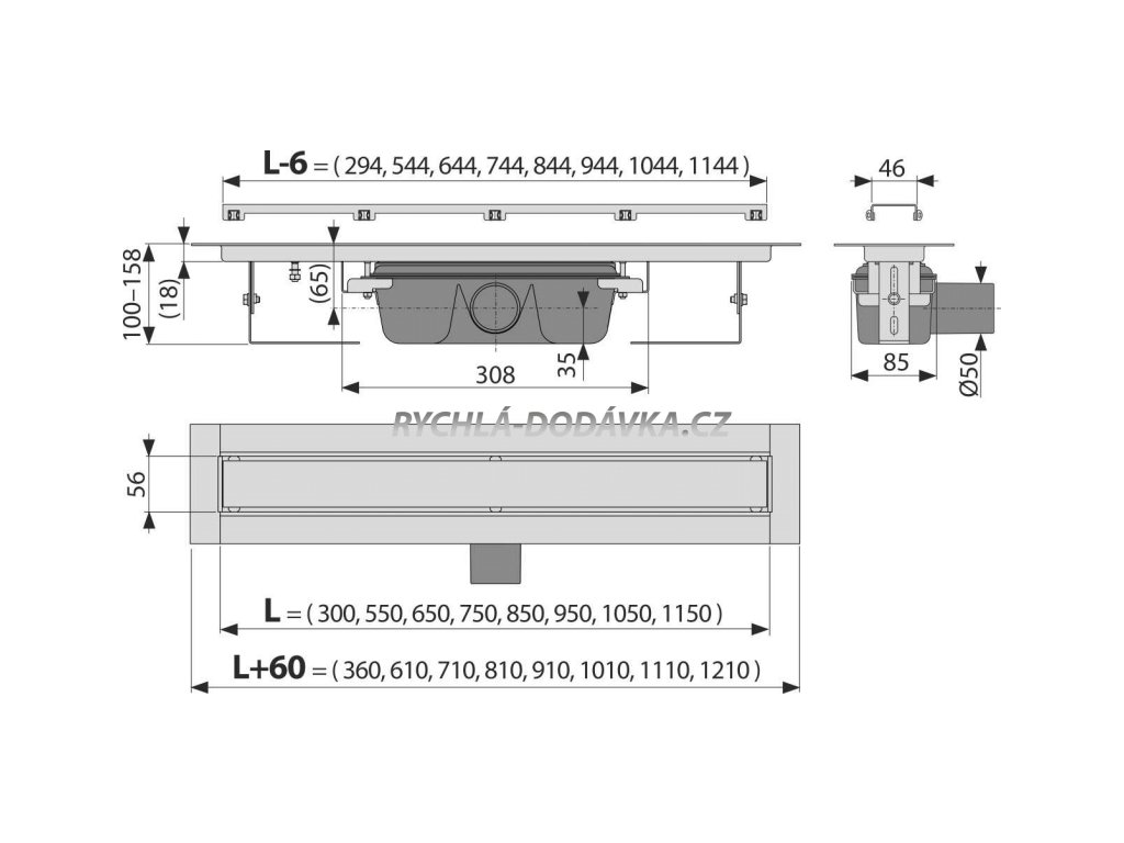 Alcadrain APZ15-1050 - Podlahový žlab bez okraje s roštem pro vložení dlažby + SLEVA 3% při použití kódu MS3 v košíku