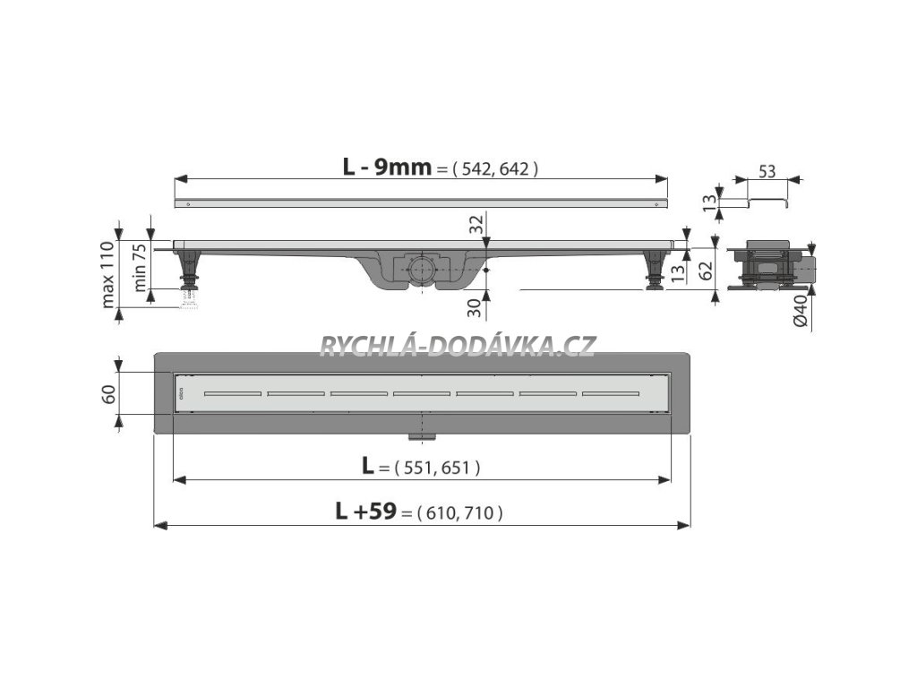 Alcadrain APZ18-550M - Podlahový žlab s nerezovým okrajem pro perforovaný rošt + SLEVA 3% při použití kódu MS3 v košíku