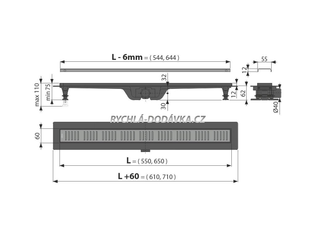 Alcadrain APZ10BLACK-550BRASS - Podlahový žlab s okrajem pro perforovaný rošt, mosaz + SLEVA 3% při použití kódu MS3 v košíku