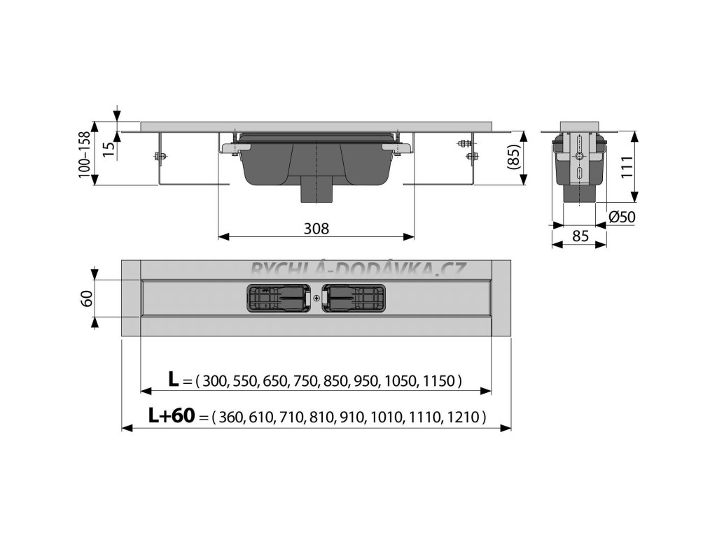 Alcadrain APZ1001-550 - Podlahový žlab s okrajem pro perforovaný rošt, svislý odtok + SLEVA 3% při použití kódu MS3 v košíku