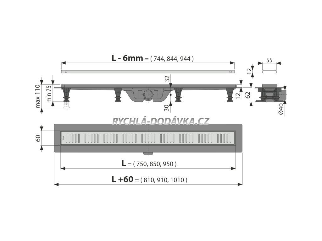 Alcadrain APZ10-750M - Podlahový žlab s okrajem pro perforovaný rošt + SLEVA 3% při použití kódu MS3 v košíku