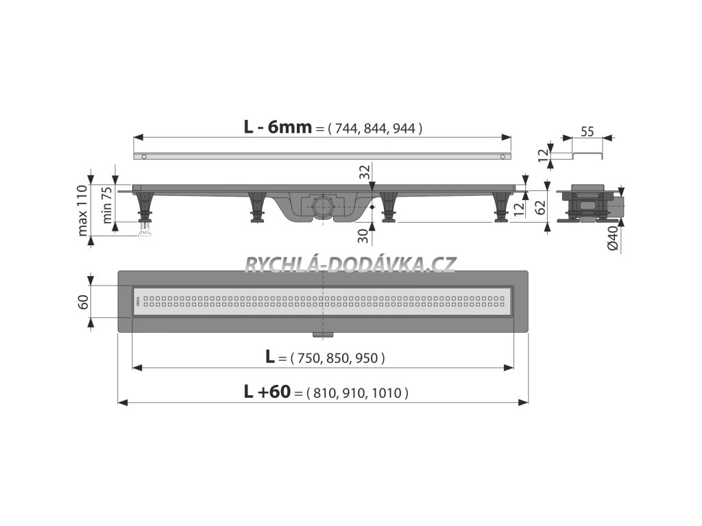 Alcadrain APZ9-850M - Podlahový žlab s okrajem pro perforovaný rošt + SLEVA 3% při použití kódu MS3 v košíku