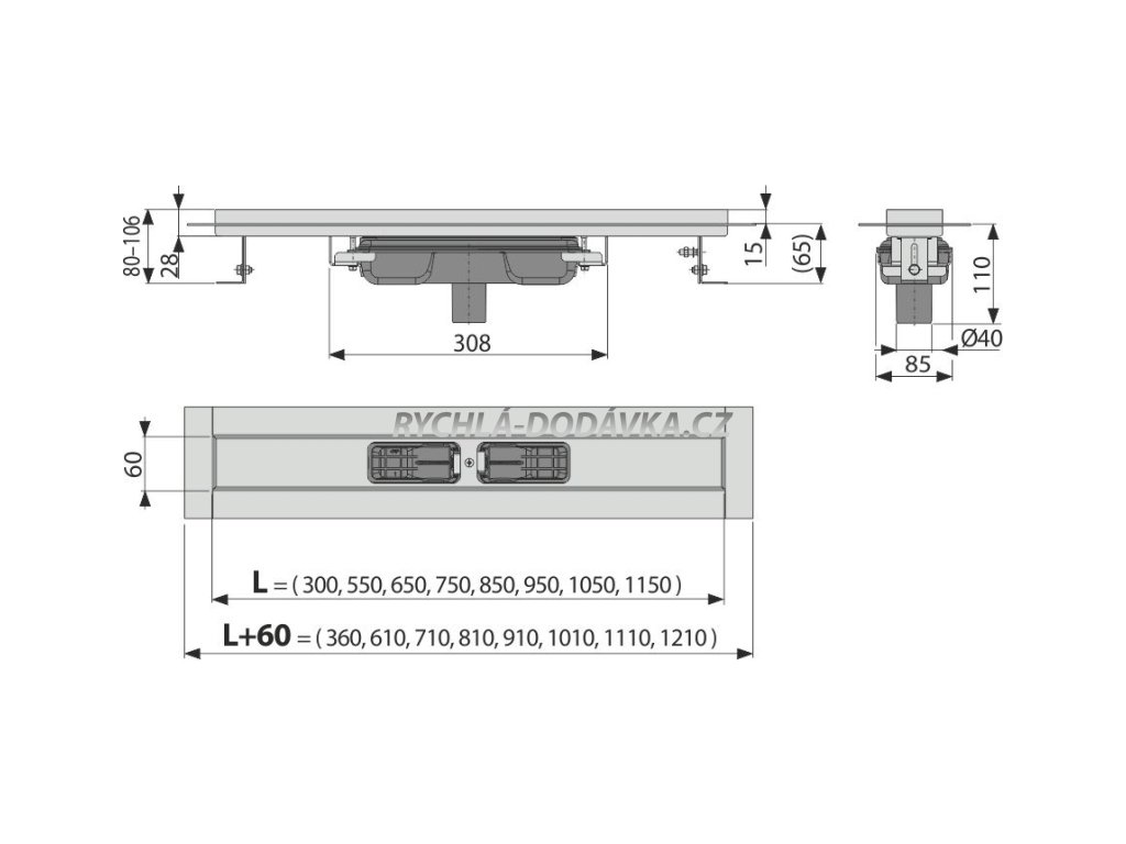 Alcadrain APZ1106-1050 - Podlahový žlab s okrajem pro plný rošt, svislý odtok + SLEVA 3% při použití kódu MS3 v košíku