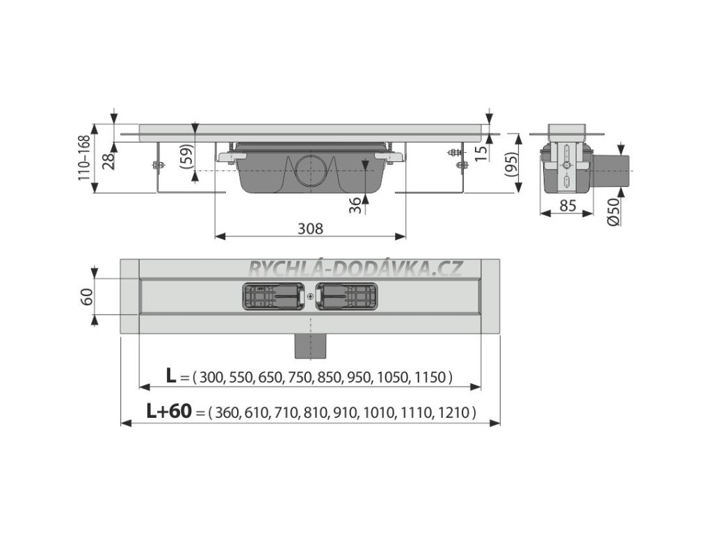 Alcadrain APZ6-950 - Podlahový žlab s okrajem pro plný rošt + SLEVA 3% při použití kódu MS3 v košíku