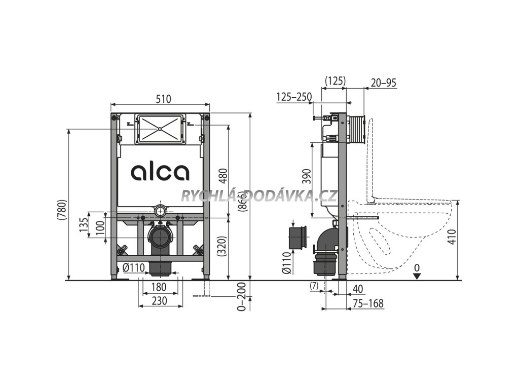 Alcadrain AM101/850W - Předstěnový instalační systém pro suchou instalaci (do sádrokartonu) + SLEVA 3% při použití kódu MS3 v košíku