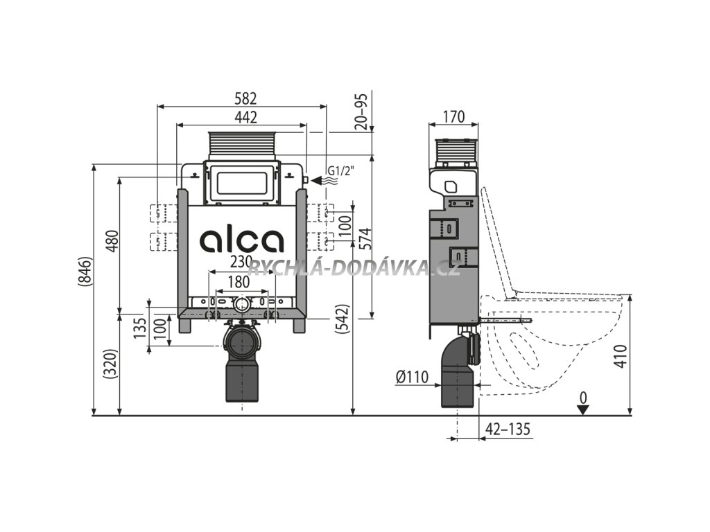Použití:Pro montáž závěsného WC s připojovací roztečí 180 mm nebo 230 mm