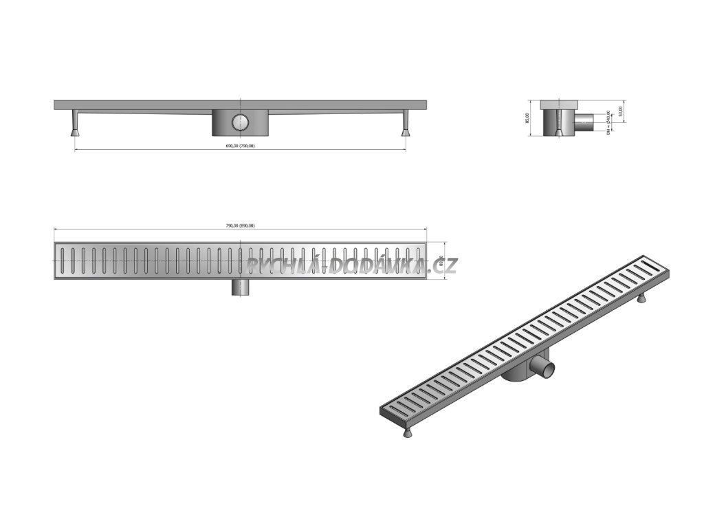 - Žlab je vyspádován směrem k sifonu, díky čemuž nebude po sprchování zůstávat stát voda v kanálku