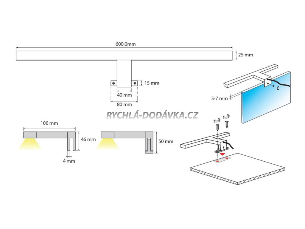 SERAPA LED svítidlo 8W, 230V, 600x50x100mm, plast, chrom SA149