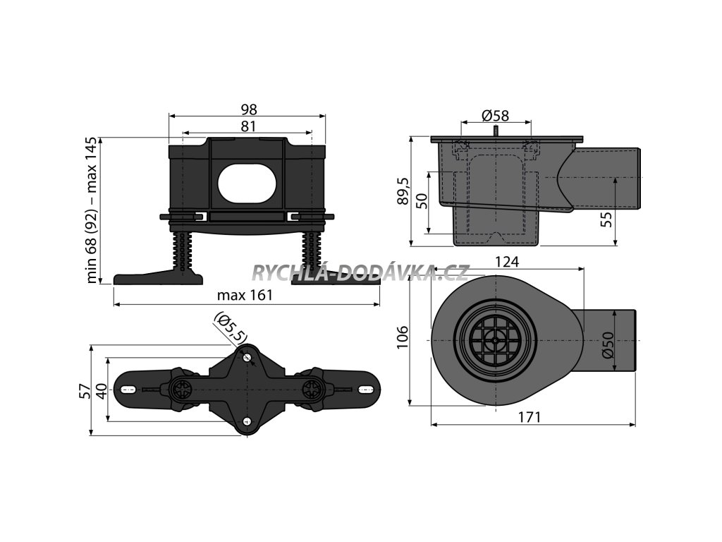 Alcadrain APZ-S12 - Sifon DN50 a sada nastavitelných noh + SLEVA 3% při použití kódu MS3 v košíku