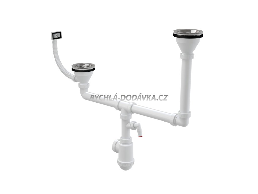 Alcadrain A456P - Sifon pro dvoudřez s nerezovými mřížkami DN115 dvouúrovňový s přepadem a přípojkou + SLEVA 3% při použití kódu MS3 v košíku