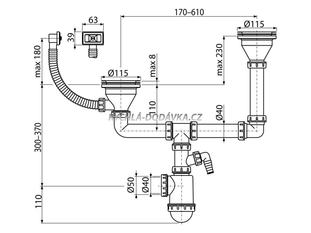 Použití:Pro dvoudílné dřezy s rozdílnou hloubkou a přepadem