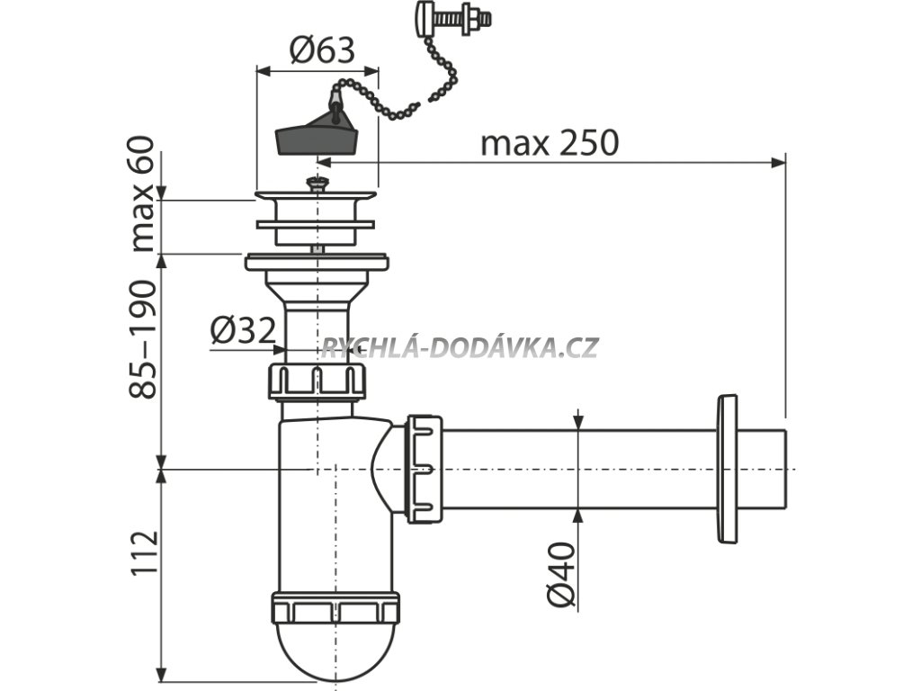 Alcadrain A42R - Sifon umyvadlový DN40 s plastovou mřížkou DN63, řetízek + SLEVA 3% při použití kódu MS3 v košíku
