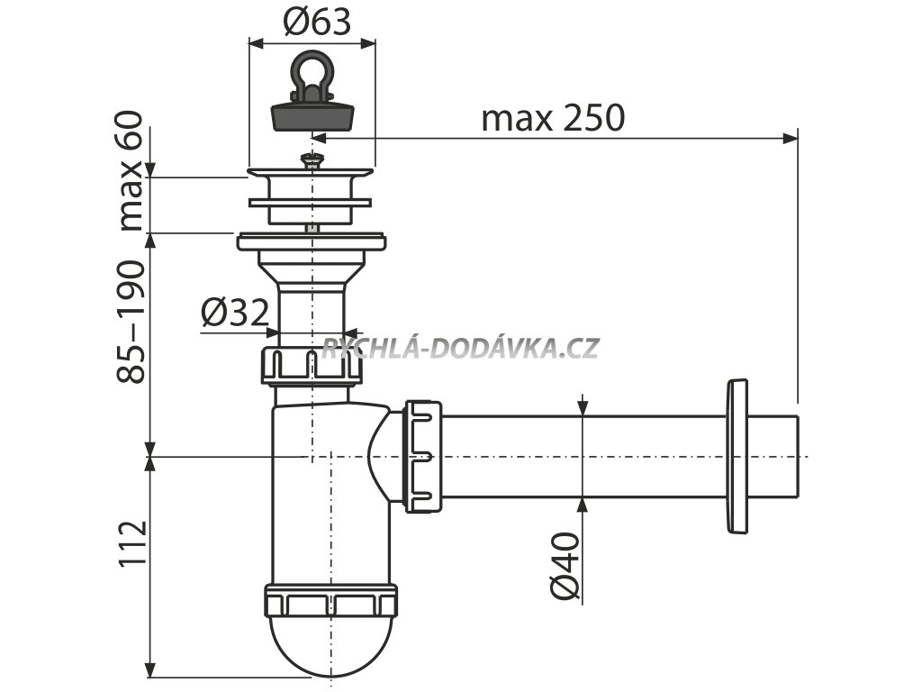 Alcadrain A42 - Sifon umyvadlový DN40 s plastovou mřížkou DN63 + SLEVA 3% při použití kódu MS3 v košíku