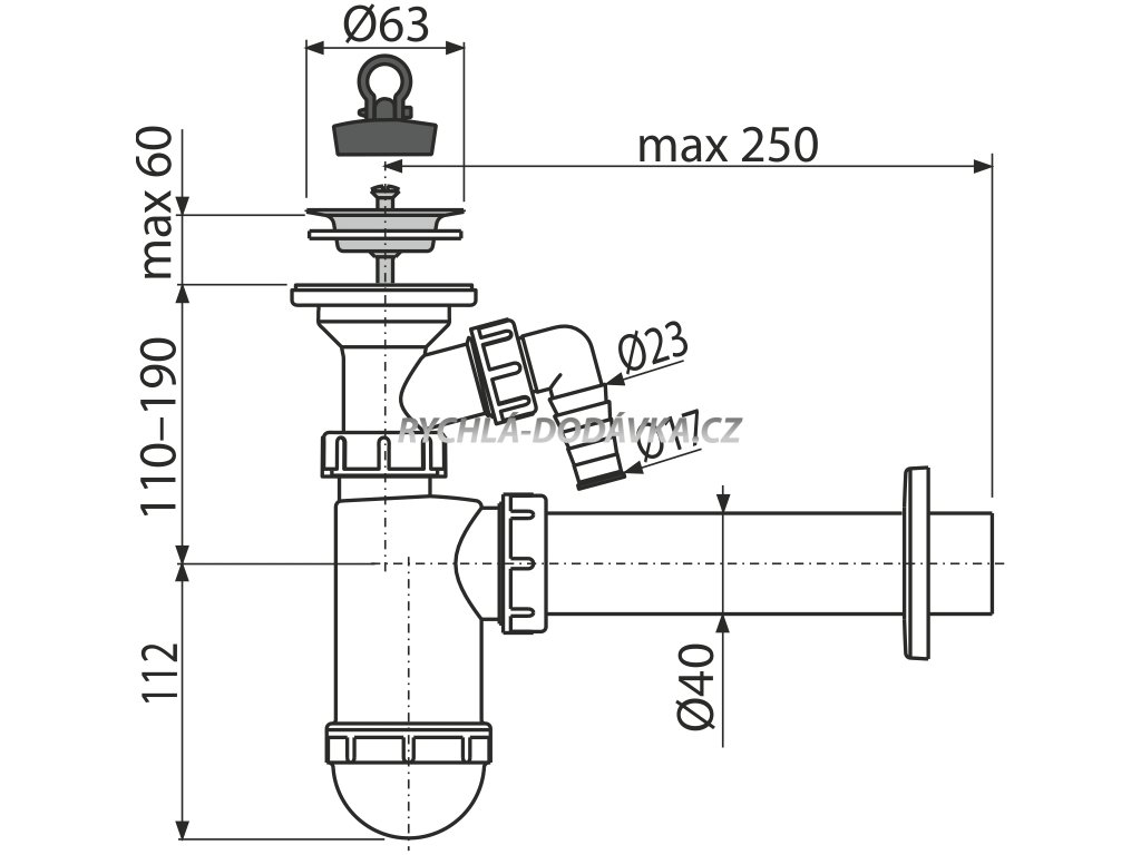 Napojení na odpadní trubku Ø40 mm