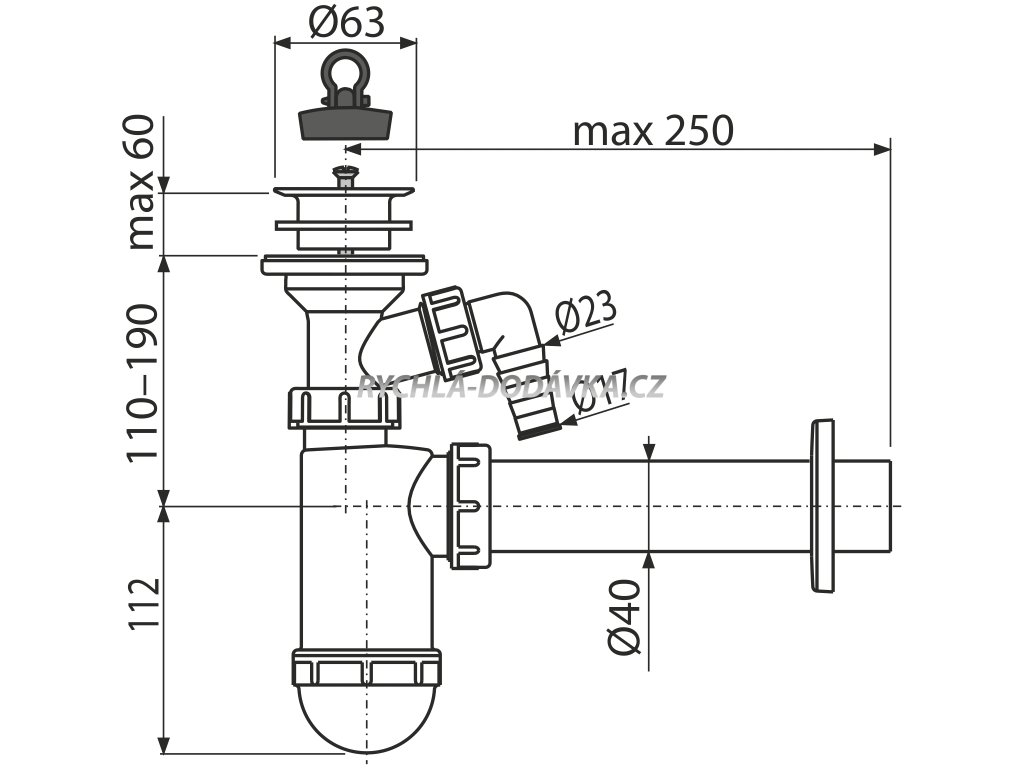 Alcadrain A42P - Sifon umyvadlový DN40 s přípojkou a plastovou mřížkou DN63 + SLEVA 3% při použití kódu MS3 v košíku