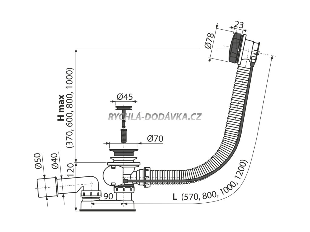 Alcadrain A55BLACK - Sifon vanový automat komplet, černá-mat + SLEVA 3% při použití kódu MS3 v košíku