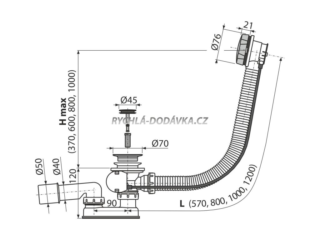 Zápachová uzávěra z polypropylenu, tepelně a chemicky odolná, podélně svařovaná