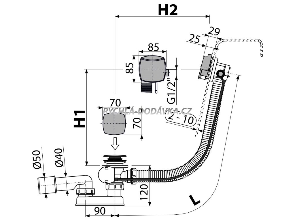 Alcadrain A564CRM2-100 - Sifon vanový automat s napouštěním přepadem, chrom + SLEVA 3% při použití kódu MS3 v košíku