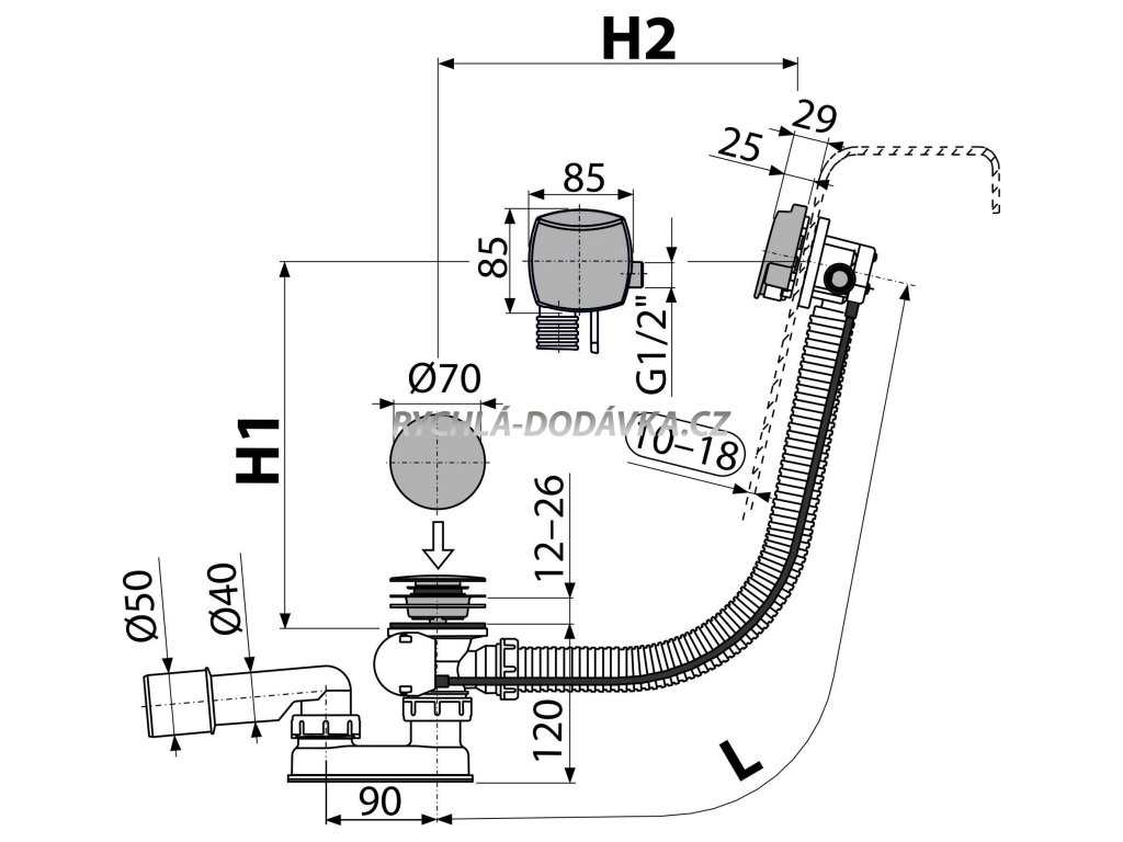 Alcadrain A565CRM1-80 - Sifon vanový automat s napouštěním přepadem pro silnostěnné vany, chrom + SLEVA 3% při použití kódu MS3 v košíku