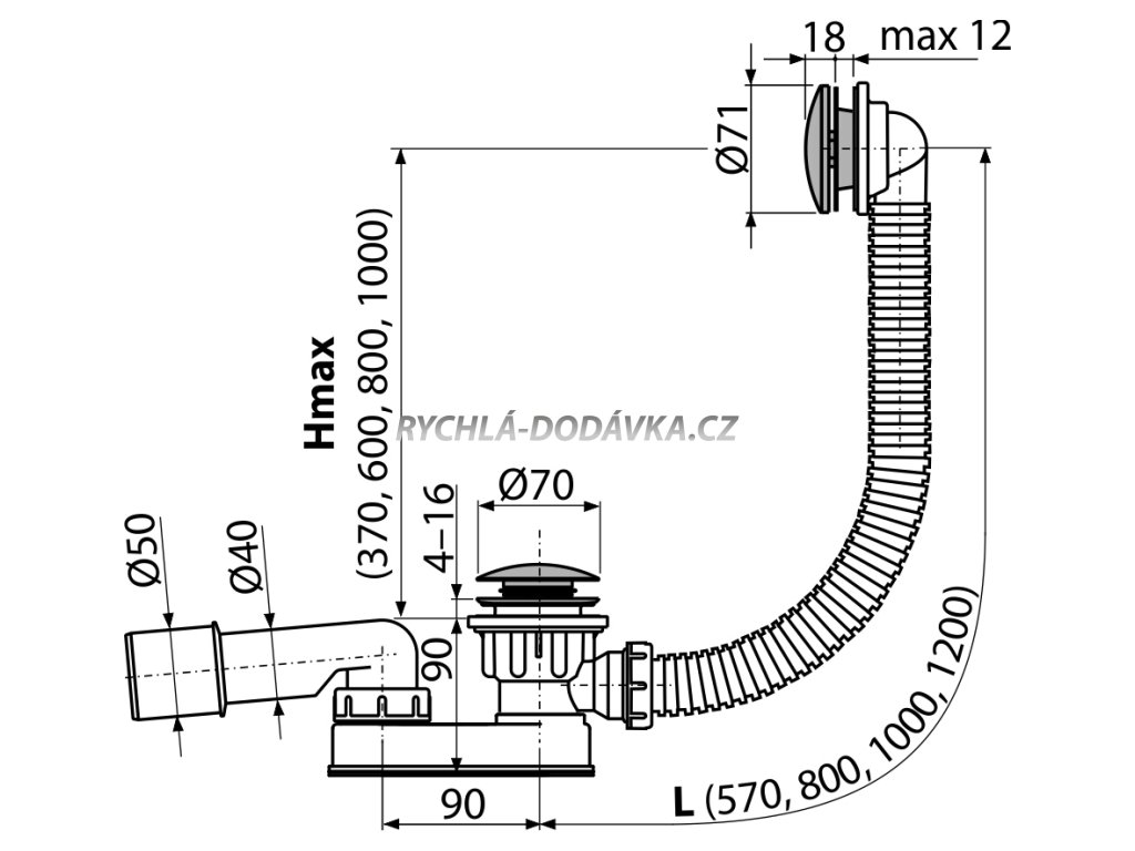 Alcadrain A507CKM - Sifon vanový CLICK/CLACK, kov + SLEVA 3% při použití kódu MS3 v košíku