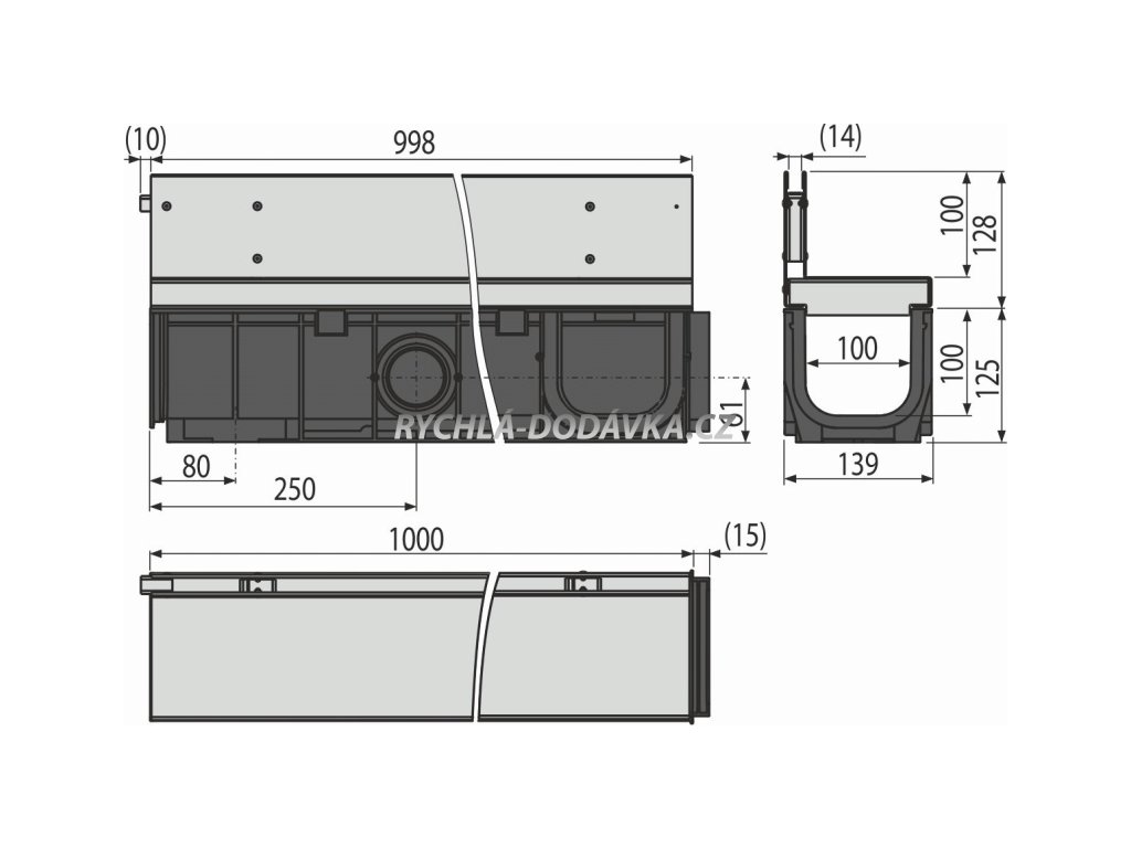 Přívod vody z boku žlabu na čtyřech místech – Ø50 mm