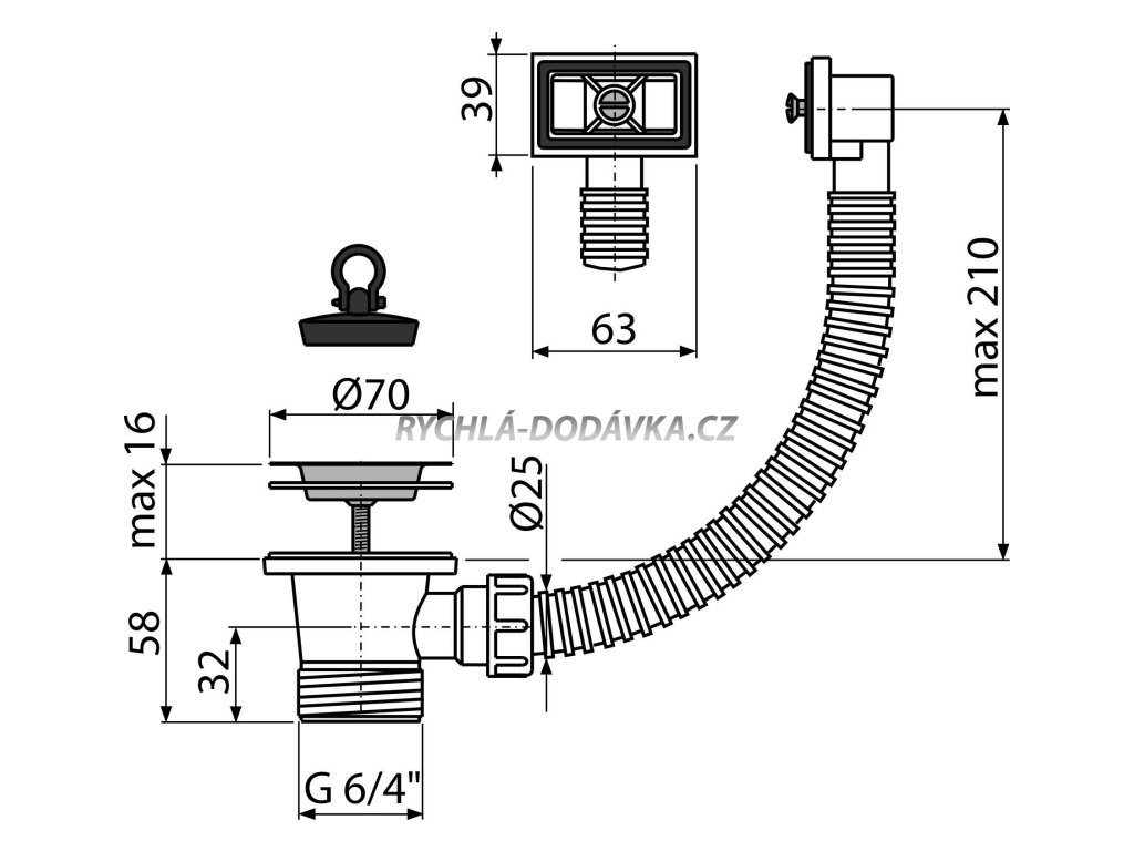 Alcadrain A331 - Výpust dřezová 6/4" s nerezovou mřížkou DN70 a flexi přepadem + SLEVA 3% při použití kódu MS3 v košíku