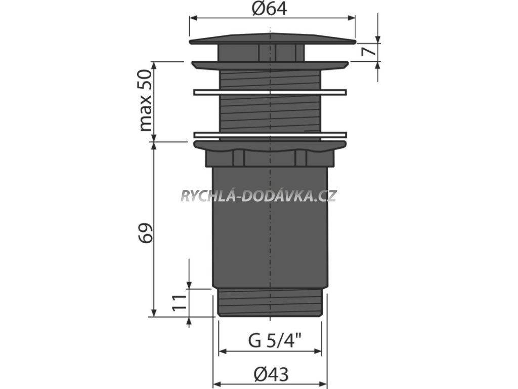 Alcadrain A396BLACK - Výpust umyvadlová 5/4" celokovová, velká neuzavíratelná zátka, pro umyvadla bez přepadu, černá-mat + SLEVA 3% při použití kódu MS3 v košíku