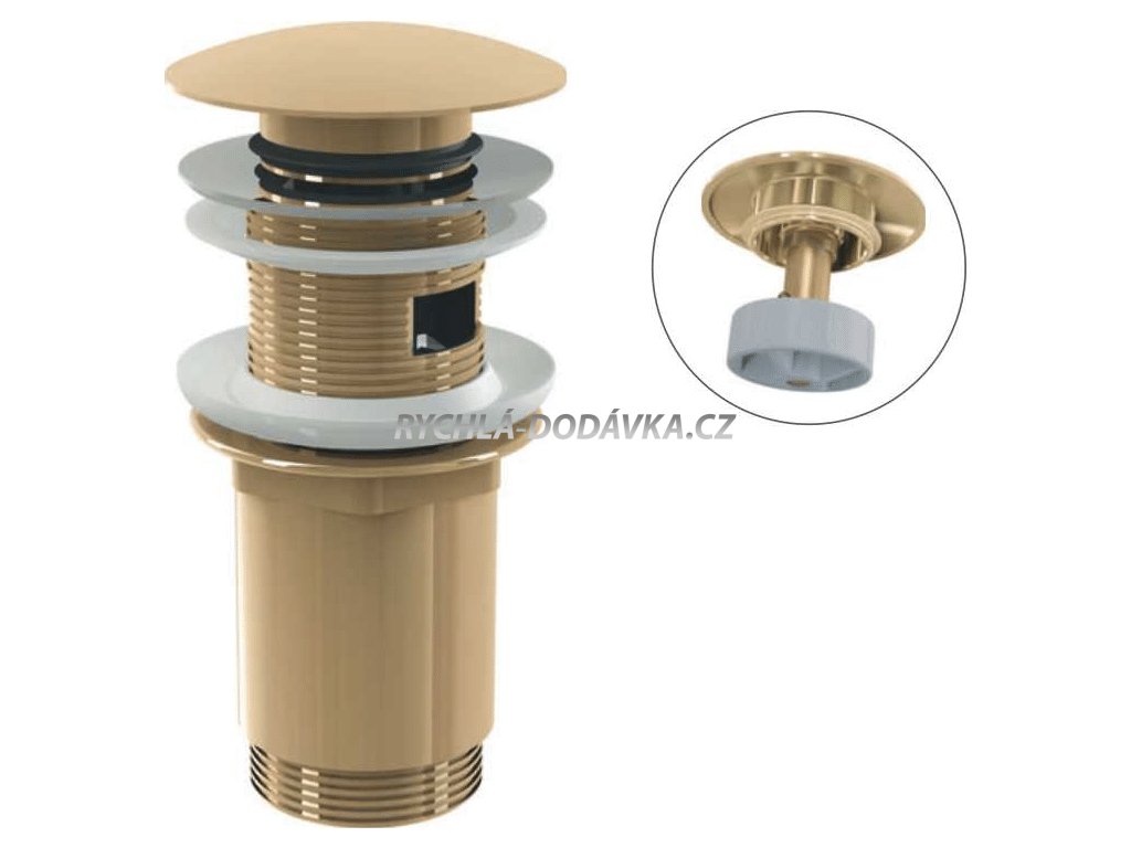 Alcadrain A392-G-P - Výpust umyvadlová CLICK/CLACK 5/4" celokovová s přepadem, velká zátka, GOLD-lesk + SLEVA 3% při použití kódu MS3 v košíku