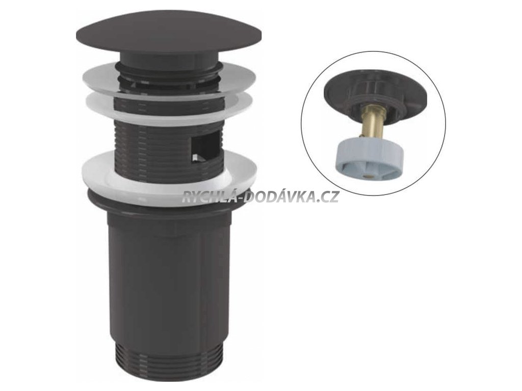 Alcadrain A392-GM-B - Výpust umyvadlová CLICK/CLACK 5/4" celokovová s přepadem, velká zátka, GUN METAL-kartáčovaný mat + SLEVA 3% při použití kódu MS3 v košíku