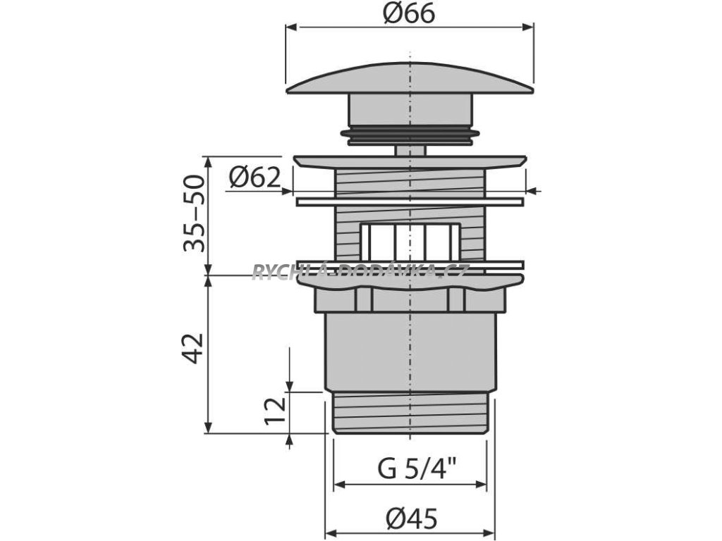 Alcadrain A390 - Výpust umyvadlová CLICK/CLACK 5/4" celokovová s přepadem, velká zátka + SLEVA 3% při použití kódu MS3 v košíku